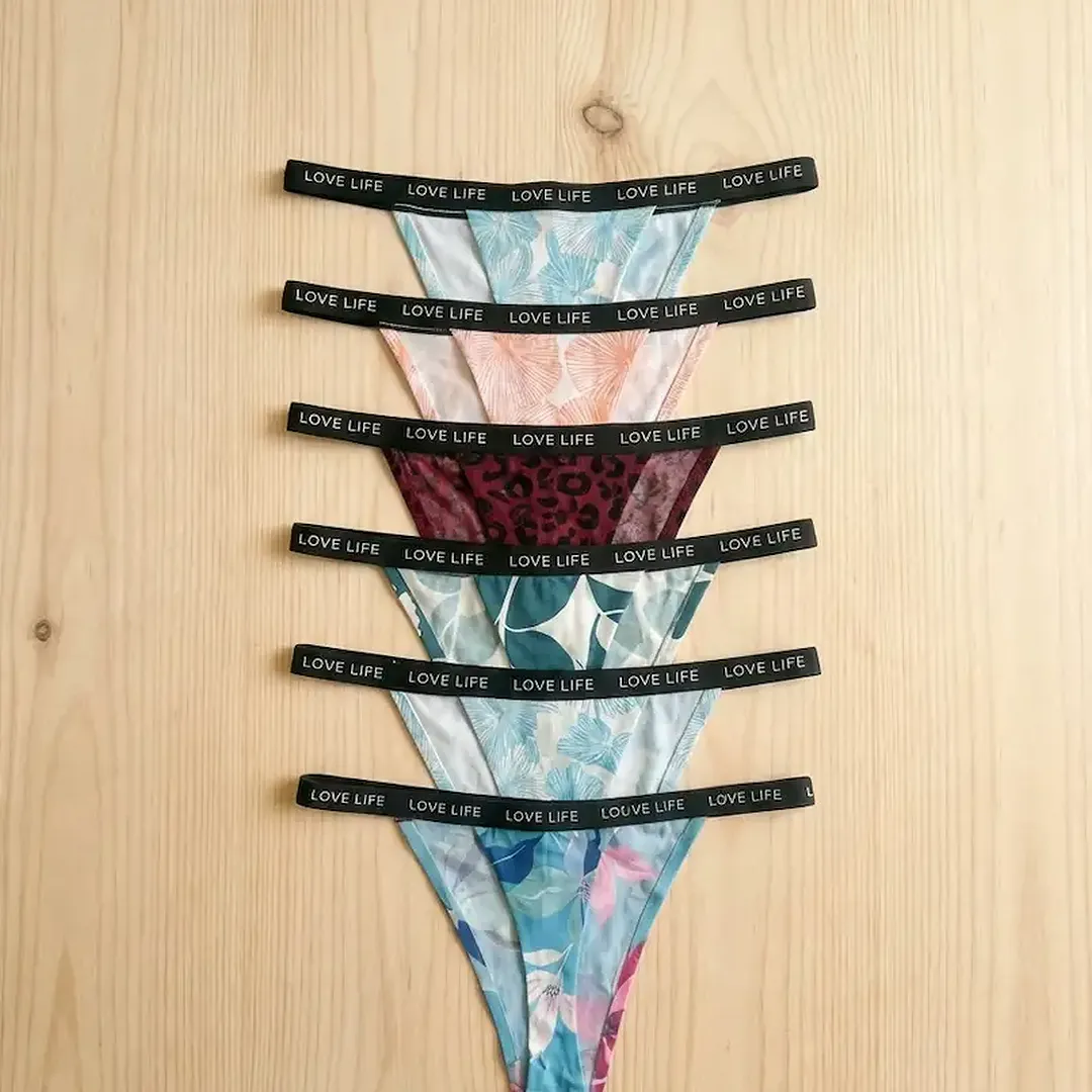 Hilo de dama sin costura , estampado con liga. La docena viene variada entre tallas S/M y L/Xl . Pueden funcionar como talla única todos. Son importados tela licra