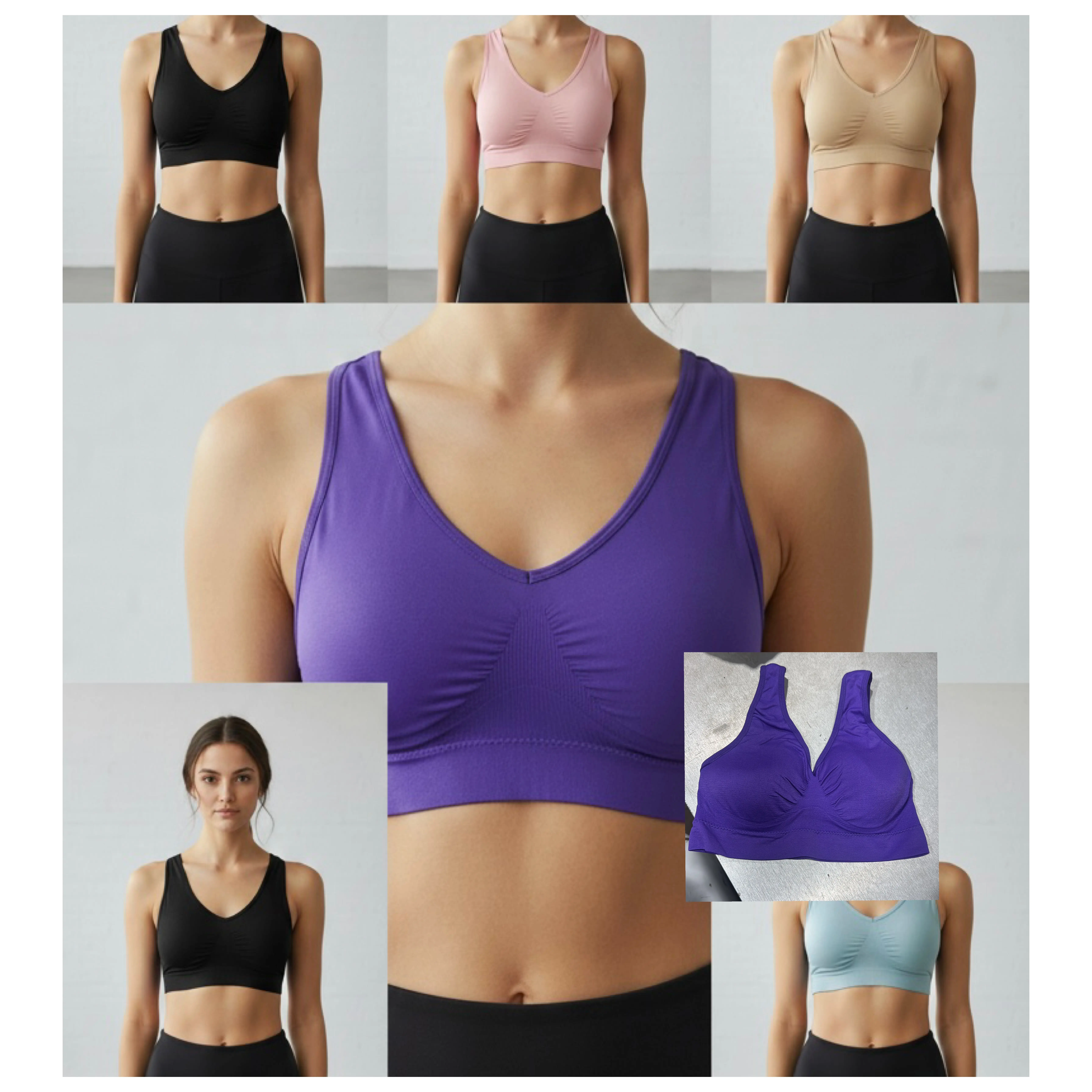 Docena cerrada de tops deportivos en tela poliéster , importados súper stretch con copa, talla única